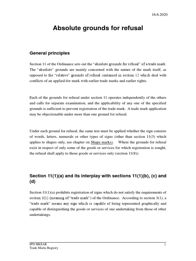 Absolute Grounds For Refusal General Principles PDF Trademark